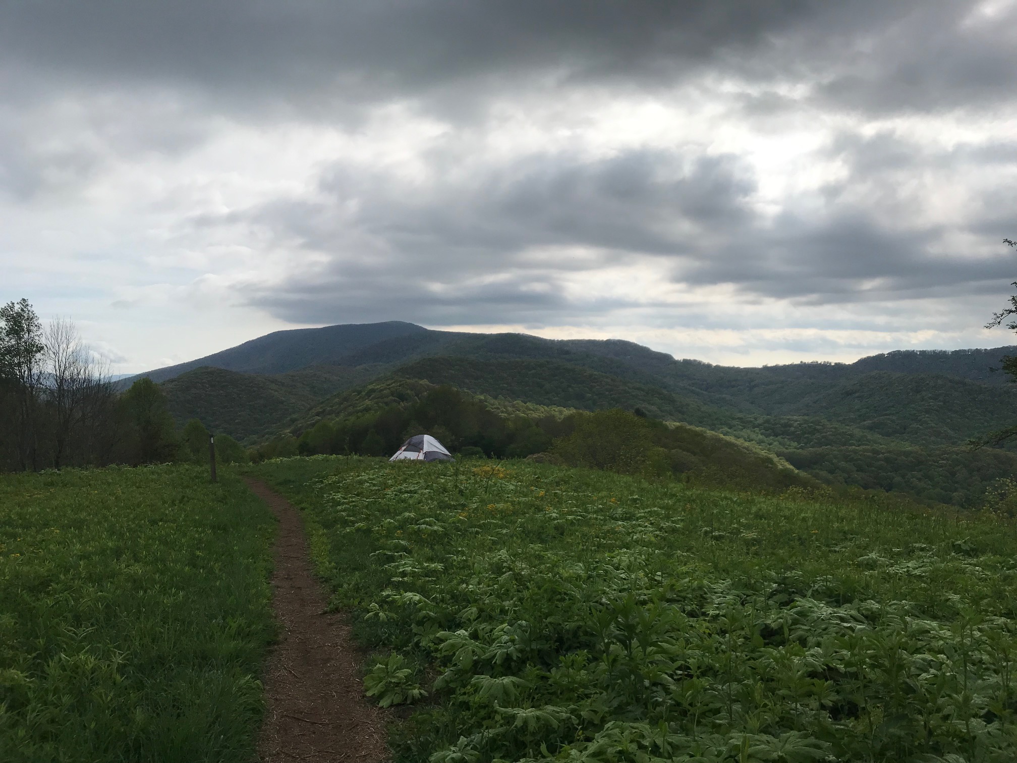 Don’t know where this day went… got going early in a spooky cold fog (sorry I didn’t think to take pictures!) and just plugged along all day, thinking all my crazy thoughts and marveling at some really nice mossy old-growth-looking coniferous forests at elevation. (again no pictures!)