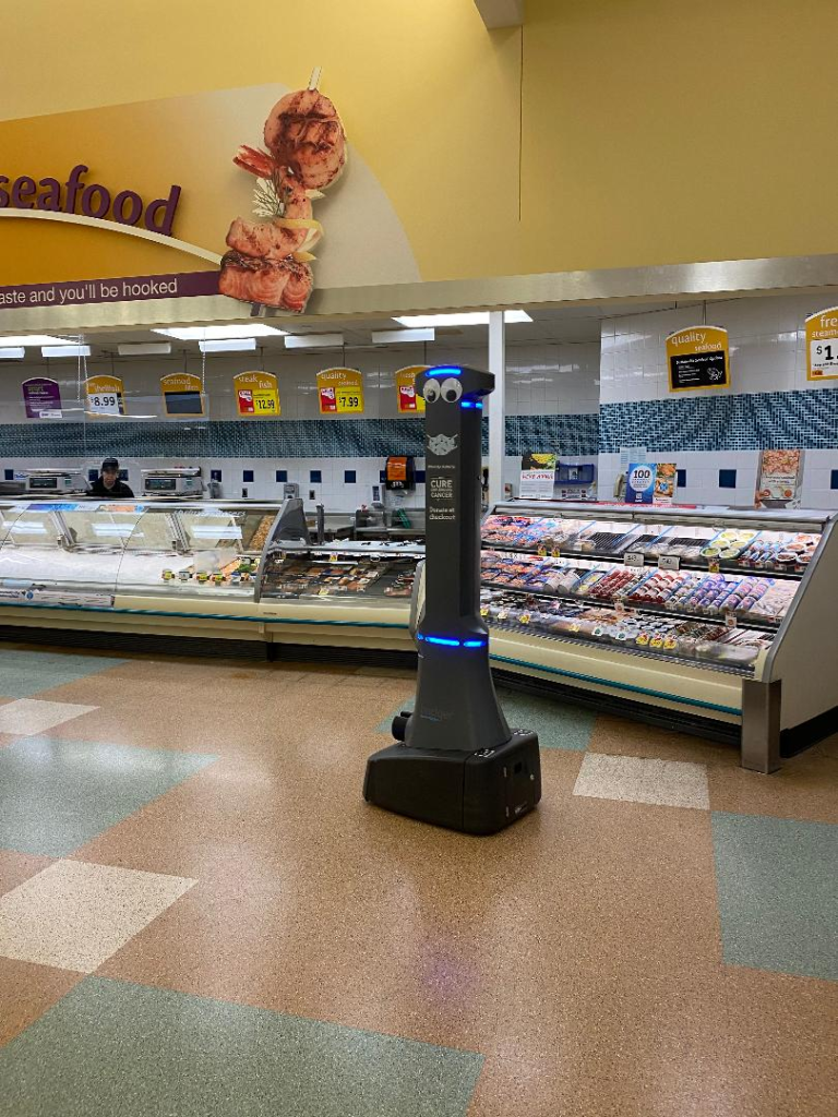 I’m at Stop & Shop supermarket Sunday and turned around and almost jumped straight out of my boots when confronted by their big floor cleaning robot.  Have you seen these guys?  Tall, grey, monolithic, they move slowly down the aisles cleaning the floor underneath and of course they must have some great sensor system to keep it out of trouble.  But man, that f’ing thing scared the bejesus out of me.  It is about 6 feet high, a littler wider at the bottom where it cleans the floor but is overall vaguely of human form.